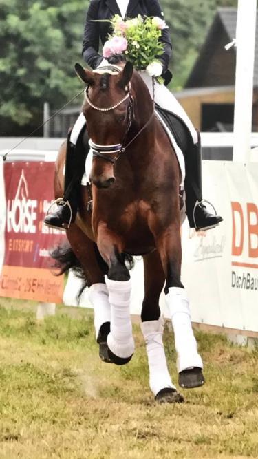 Diese bewegungsstarke oldenburger Staatsprämienstute *2010 vom TopVererber Sir Donnerhall aus einer Carry Gold Mutter dürfen wir voller Stolz unser Eigen nennen. Ihre Stutenleistungsprüfung konnte Sie als Siegerstute gewinnen und erhielt die Staatsprämie. Sie überzeugt nicht nur durch Ihren spektakulären Bewegungsablauf, sondern auch durch Ihr in- und Exterieur. Einfach eine bildschöne Stute mit viel Schmelz. Unser großer Dank gilt Denise Trabandt, welche uns das Vertrauen geschenkt hat mit dieser Stute züchterisch ein neues Kapitel aufzuschlagen.